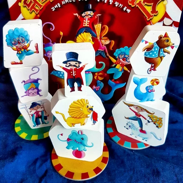 Các Khối Gỗ Lớn (Wooden Blocks): Đại diện cho các nhân vật xiếc (thú vật và công nhân). Đây là những khối trụ gỗ có màu sắc và hình dạng đặc trưng, là vật liệu chính để xếp chồng.
