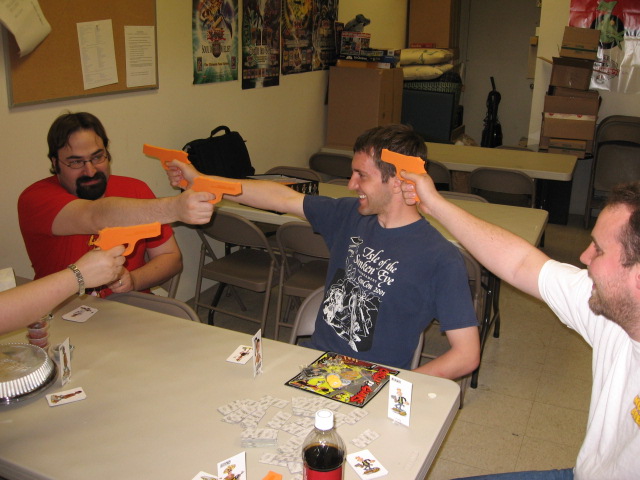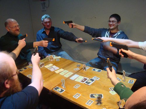 Giải Quyết Xung Đột (Resolve the Standoff): Sau khi mọi người đã quyết định hạ súng hay kiên trì, tất cả những người còn lại sẽ đồng loạt lật lá bài đạn của mình.
