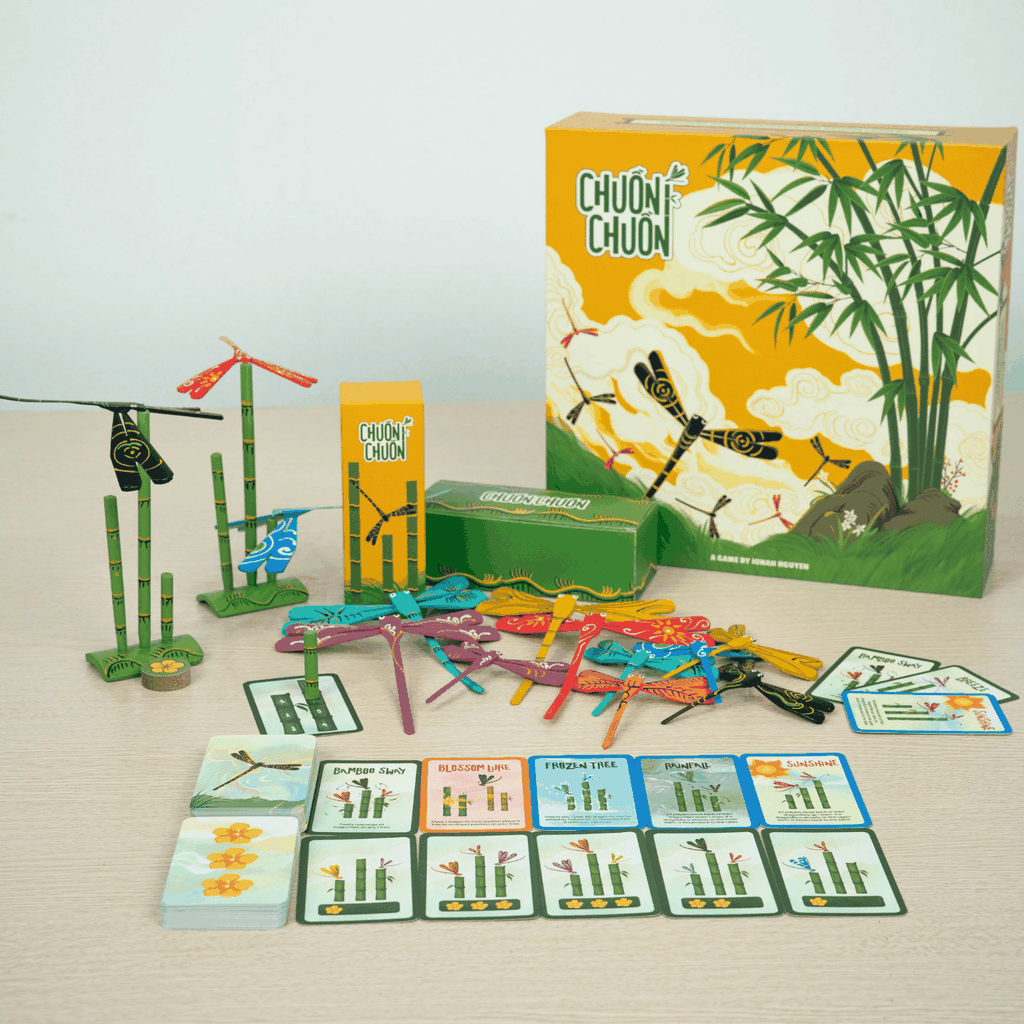 Chuồn Chuồn là một board game gia đình chiến thuật nhẹ, lấy cảm hứng từ hình ảnh chuồn chuồn tre – món đồ chơi quen thuộc gắn liền với sự khéo léo và cân bằng của tuổi thơ Việt Nam. Trò chơi được phát triển bởi Brainy Hearty Studio, một studio board game tại Mỹ với nhà thiết kế là người Việt, kết hợp cảm hứng văn hoá quen thuộc cùng tư duy thiết kế board game hiện đại.
