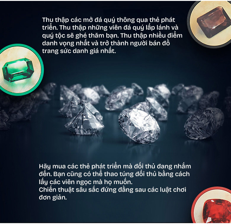 Trong Splendor, người chơi hóa thân thành những thương gia giàu có thời kỳ Phục Hưng 🧔👑, thu thập đá quý thô để xây dựng đế chế trang sức của mình 💍. Mục tiêu là trở thành người đầu tiên đạt được 15 điểm uy tín 🏅 thông qua việc mua thẻ phát triển và thu hút sự chú ý của các quý tộc 👑.
