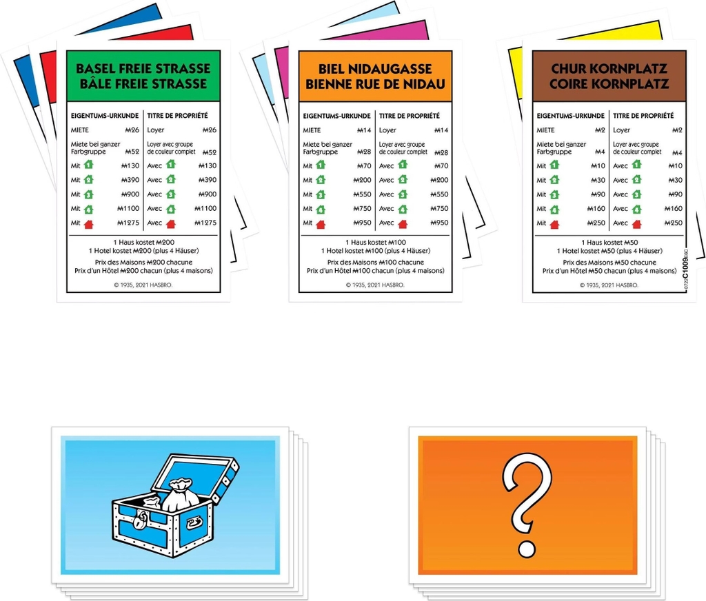 - Xào riêng hai xấp thẻ Cơ hội (Chance) và Khí vận (Community Chest), sau đó úp chúng xuống các ô tương ứng trên bàn cờ.