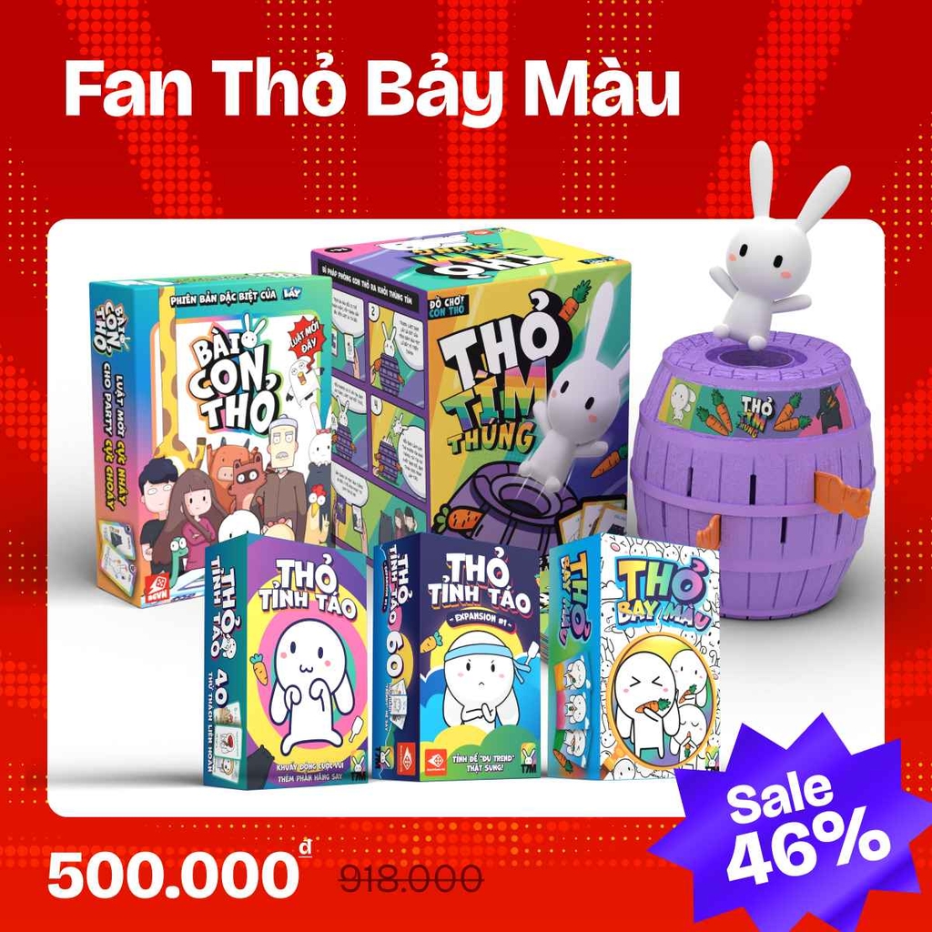 Combo Fan Thỏ Bảy Màu là gói “tuyệt đối tối ưu” cho những ai yêu thế giới của Thỏ: dễ thương, vui tươi, lầy nhẹ, chơi nhanh và tương tác cực mạnh. Một lựa chọn hoàn hảo để tạo không khí sôi nổi trong mọi buổi tụ tập.