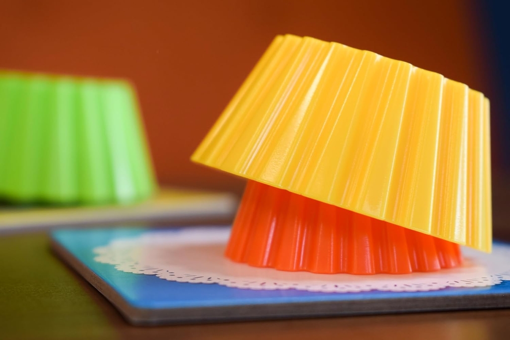 - Chồng ly: Lồng 5 cái ly cupcake vào nhau theo thứ tự từ nhỏ đến lớn rồi úp ngược chúng lại, đặt lên cái đĩa ở giữa. Lúc này bạn sẽ chỉ thấy cái ly to nhất ở bên ngoài.