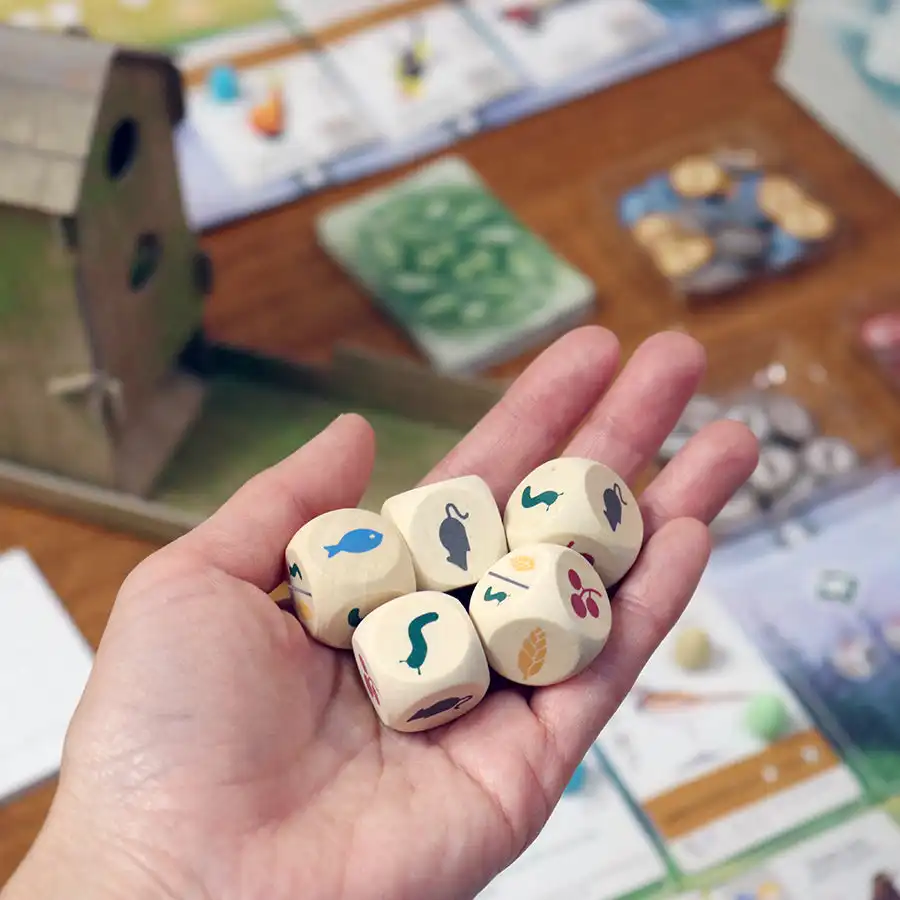 Tháp đổ xúc xắc hình nhà chim (Bird Feeder Dice Tower): Một cấu trúc lắp ráp hình nhà chim đáng yêu, dùng để gieo 5 viên xúc xắc thức ăn. Đây là một điểm nhấn độc đáo và rất được yêu thích.