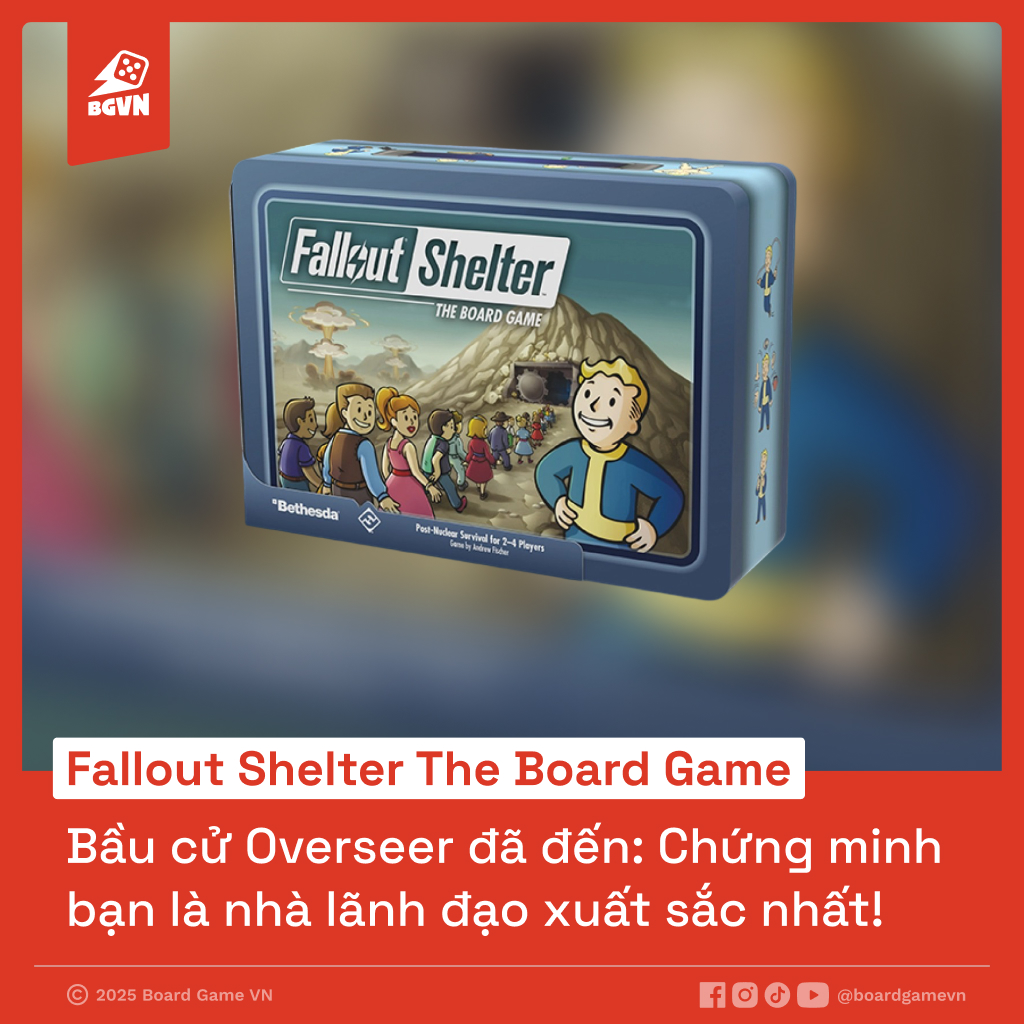 Chào mừng đến với thế giới hậu tận thế đầy hấp dẫn của Fallout Shelter: The Board Game! Dựa trên tựa game mobile đình đám từ Bethesda Softworks, trò chơi board game này do Fantasy Flight Games phát hành sẽ đưa bạn vào vai một trong những sĩ quan tài ba của Vault-Tec, với nhiệm vụ cao cả là nuôi dưỡng hạnh phúc cho cộng đồng Cư dân dưới lòng đất và tranh giành vị trí Giám sát viên (Overseer) đầy quyền lực!