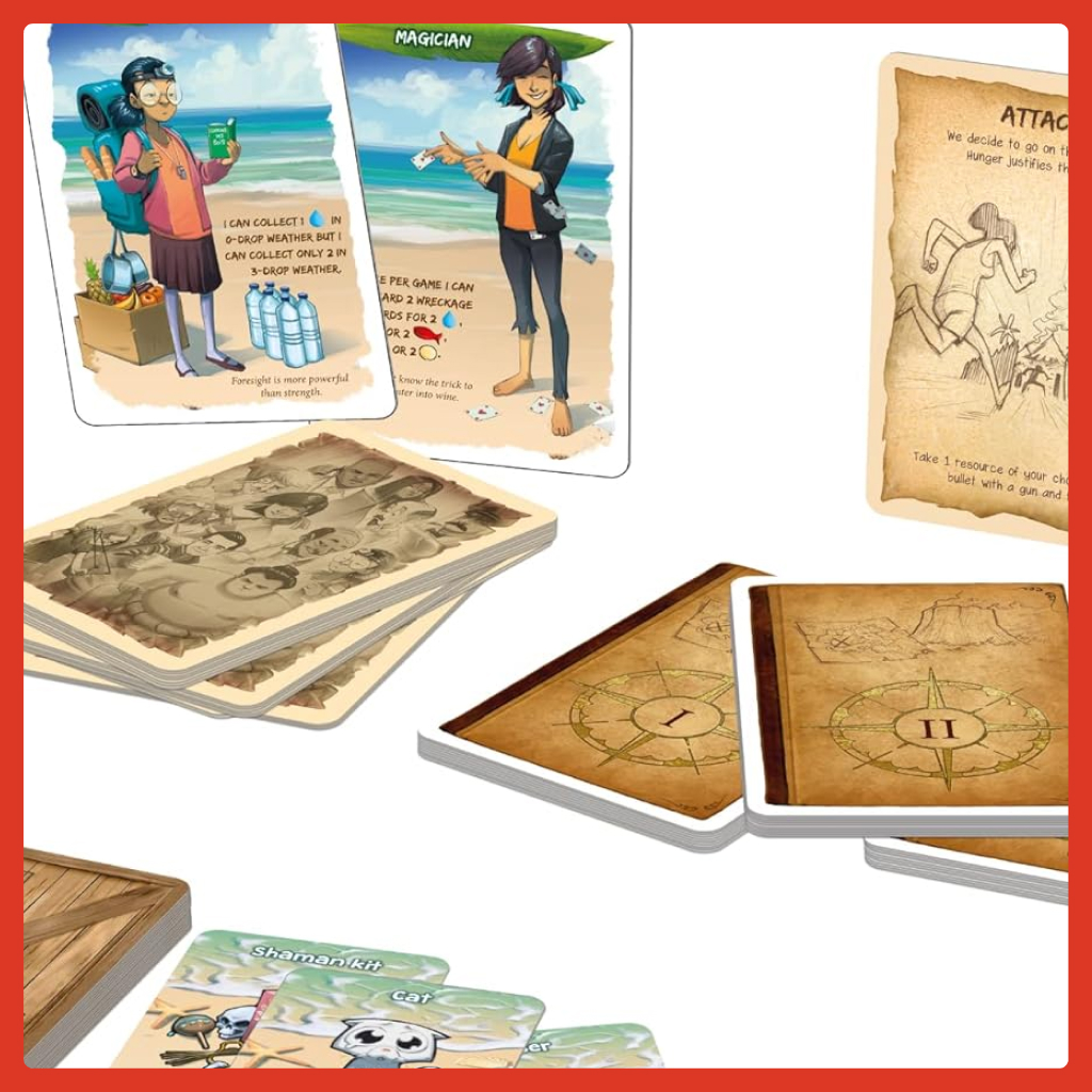 - Thoát thân thành công 🚣💨🎉: Nếu số lượng thẻ Bè bằng hoặc nhiều hơn số người còn sống SỚM hơn khi thẻ Bão tố xuất hiện, VÀ có đủ 1 khẩu phần nước và 1 khẩu phần ăn DỰ TRỮ cho mỗi người cho chuyến đi, những người lên được bè sẽ cùng nhau chiến thắng.