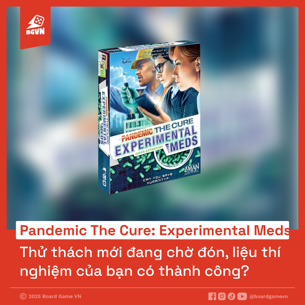 Pandemic: The Cure - Experimental Meds không chỉ đơn thuần là một bản mở rộng mà còn là một sự "nâng cấp toàn diện" cho trải nghiệm Pandemic: The Cure. Với những thử thách mới, vai trò đa dạng và cơ chế chơi độc đáo, trò chơi hứa hẹn sẽ mang đến những giờ phút căng thẳng, hồi hộp và đầy ắp những quyết định chiến lược cho bạn và những người đồng đội trên hành trình cứu rỗi thế giới khỏi bờ vực của đại dịch. Nếu bạn là một người yêu thích Pandemic: The Cure hoặc đam mê những trò chơi hợp tác đòi hỏi sự làm việc nhóm chặt chẽ và khả năng thích ứng cao, thì Experimental Meds chắc chắn là một bổ sung không thể thiếu cho bộ sưu tập board game của bạn. Theo chia sẻ từ Matt Leacock tại SPIEL 2016, bản mở rộng này thực sự "gấp đôi" lượng vai trò và mang đến một "tấn" sự đa dạng cho trò chơi. Hãy sẵn sàng cho những thử nghiệm đầy bất ngờ và những chiến thắng ngọt ngào khi các bạn cùng nhau vượt qua những thách thức mới!