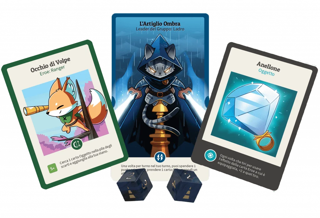 - Challenge: Khi một người chơi khác chơi một lá bài (không phải Anh Hùng hay Vật Phẩm) nhắm vào bạn, bạn có thể ngay lập tức chơi một lá Challenge. Cả hai cùng đổ 1 xúc xắc. Nếu điểm của bạn cao hơn, hành động của đối thủ bị hủy. Nếu thấp hơn hoặc bằng, hành động của họ vẫn diễn ra.