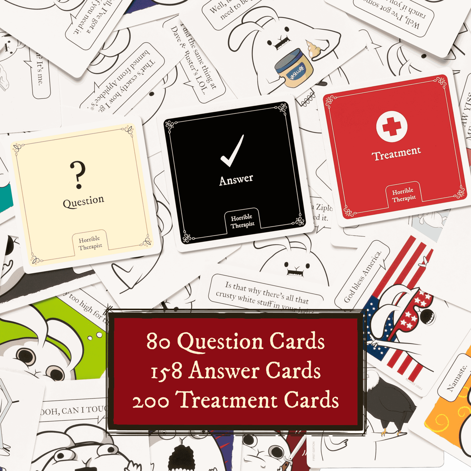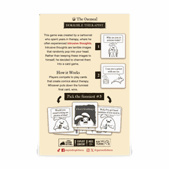 Horrible Therapist: Extra Horrible Edition là một trò chơi party dành cho người lớn, mang phong cách hài hước đen và đầy tính “châm biếm”. Người chơi sẽ cùng nhau xây dựng những câu chuyện trị liệu “điên rồ” bằng cách kết hợp thẻ Câu hỏi, Trả lời và Điều trị, tạo nên những tình huống vừa kỳ quặc, vừa gây cười đến “khó đỡ”. Đây là trò chơi lý tưởng cho những buổi tiệc bạn bè, nơi ai cũng có thể bung xõa và để trí tưởng tượng đi xa hết mức có thể.
