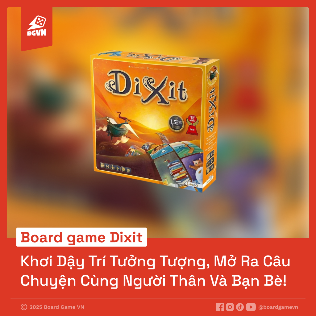 Dixit là một trò chơi kể chuyện và đoán hình ảnh đầy sáng tạo và trí tưởng tượng, phù hợp cho gia đình và bạn bè từ 8 tuổi trở lên, với số lượng người chơi từ 3 đến 6 người. Một ván Dixit thường kéo dài khoảng 30 phút. Trò chơi này đã giành được nhiều giải thưởng uy tín, trong đó có giải thưởng Spiel des Jahres danh giá vào năm 2010, chứng tỏ sự hấp dẫn và độc đáo của nó. Điểm đặc biệt của Dixit nằm ở những lá bài được minh họa tuyệt đẹp và mang tính nghệ thuật cao, khơi gợi trí tưởng tượng phong phú của người chơi. Mục tiêu của trò chơi là trở thành người đầu tiên đạt được 30 điểm hoặc có số điểm cao nhất khi ván chơi kết thúc. Dixit không chỉ là một trò chơi tính điểm mà còn là một trải nghiệm sáng tạo và xã hội đáng trân trọng.