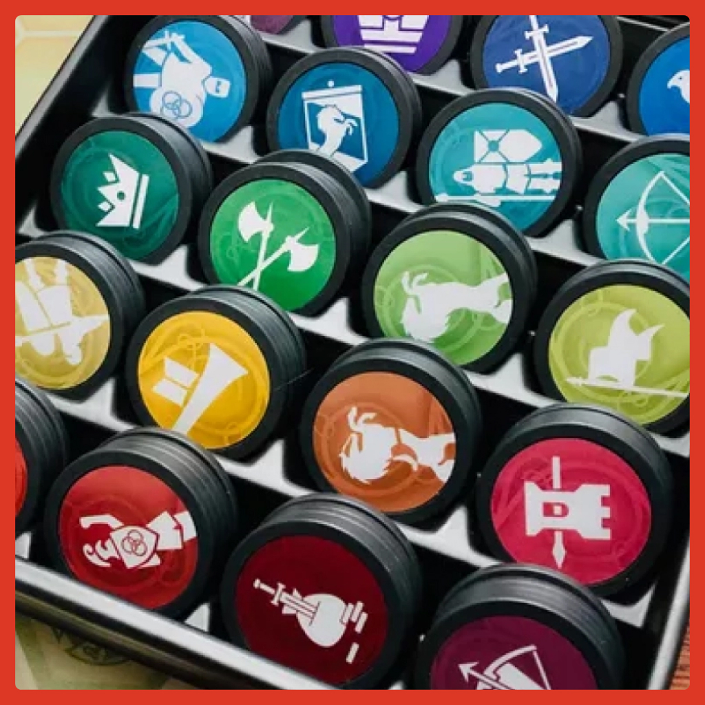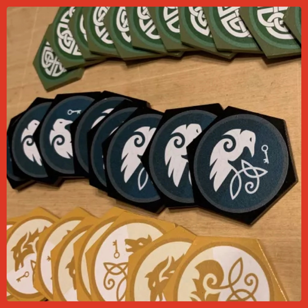 - Mỗi người chơi đặt hai quân cờ của mỗi đơn vị và một đồng xu hoàng gia vào túi của họ.