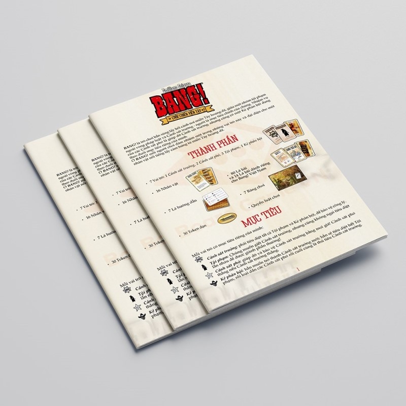 Với luật chơi rõ ràng, cách diễn tiến lượt đơn giản nhưng luôn mở ra cơ hội chiến lược và bất ngờ, board game Bang! là lựa chọn tuyệt vời cho nhóm bạn hoặc buổi tụ tập gia đình. Khi bạn đã nắm vững luật chơi và hiểu rõ vai trò, mỗi ván chơi sẽ trở nên thú vị hơn rất nhiều. Hãy bắt đầu một ván đấu súng kịch tính và xem ai sẽ sống sót tới cuối cùng!