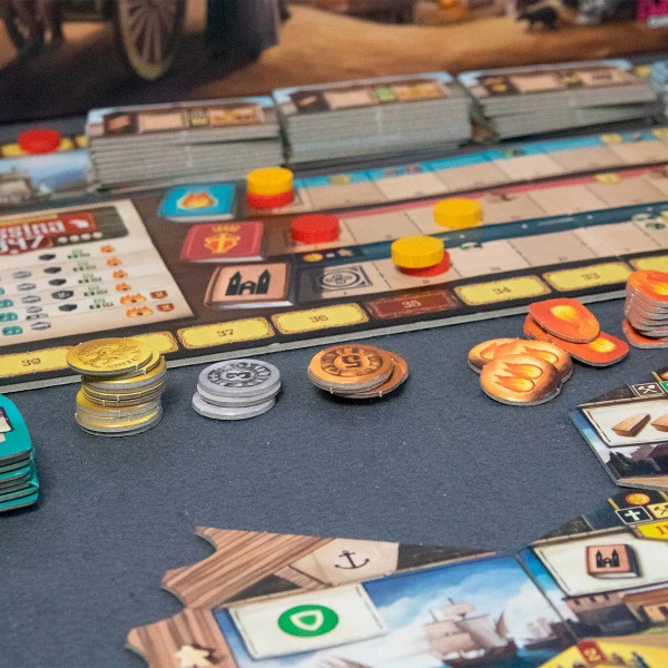 - Thuyền và Cảng: Xáo trộn các thẻ cảng (docking tiles) thành một chồng úp. Tách các thẻ thuyền theo số la mã (I, II, III) ở mặt sau, xáo riêng từng chồng rồi đặt chồng II lên chồng III, và chồng I lên trên cùng.