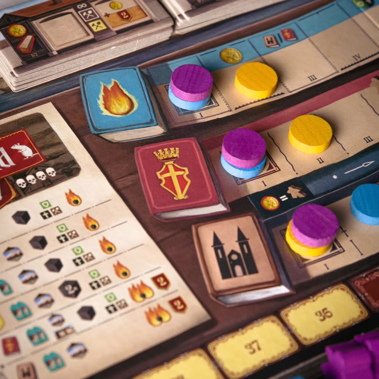 Xây dựng bộ máy (Engine Building): Việc nâng cấp các điền trang và phân bổ nhân sự đúng chuyên môn (thợ thủ công, quý tộc, tu sĩ) sẽ tạo ra những chuỗi combo điểm số cực khủng ở giai đoạn cuối game.