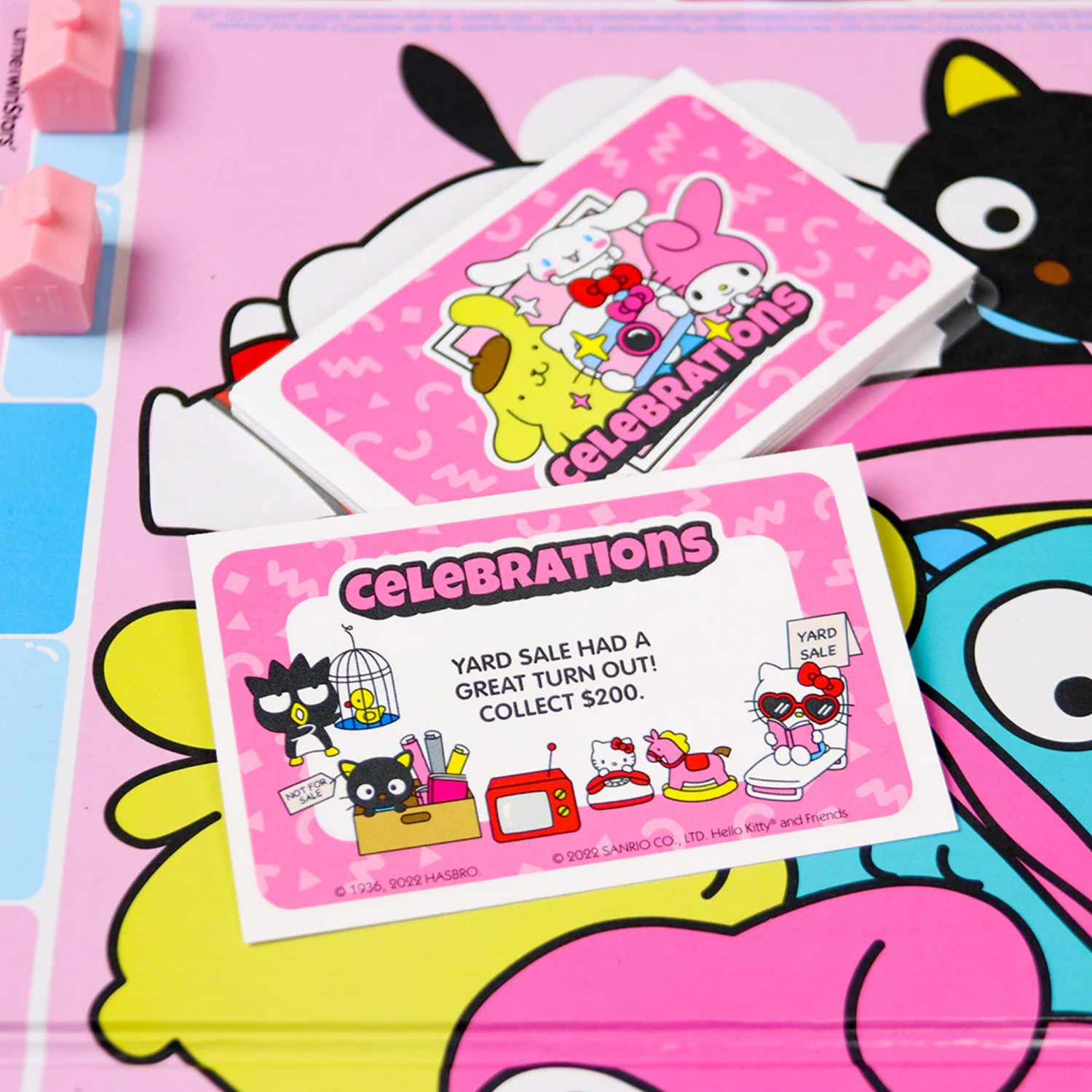 Bàn cờ: Các ô đất được thay thế bằng các địa điểm yêu thích của hội bạn thân như: Tiệm bánh của Hello Kitty, Công viên của Cinnamoroll, hay Tiệm kem của Pompompurin.