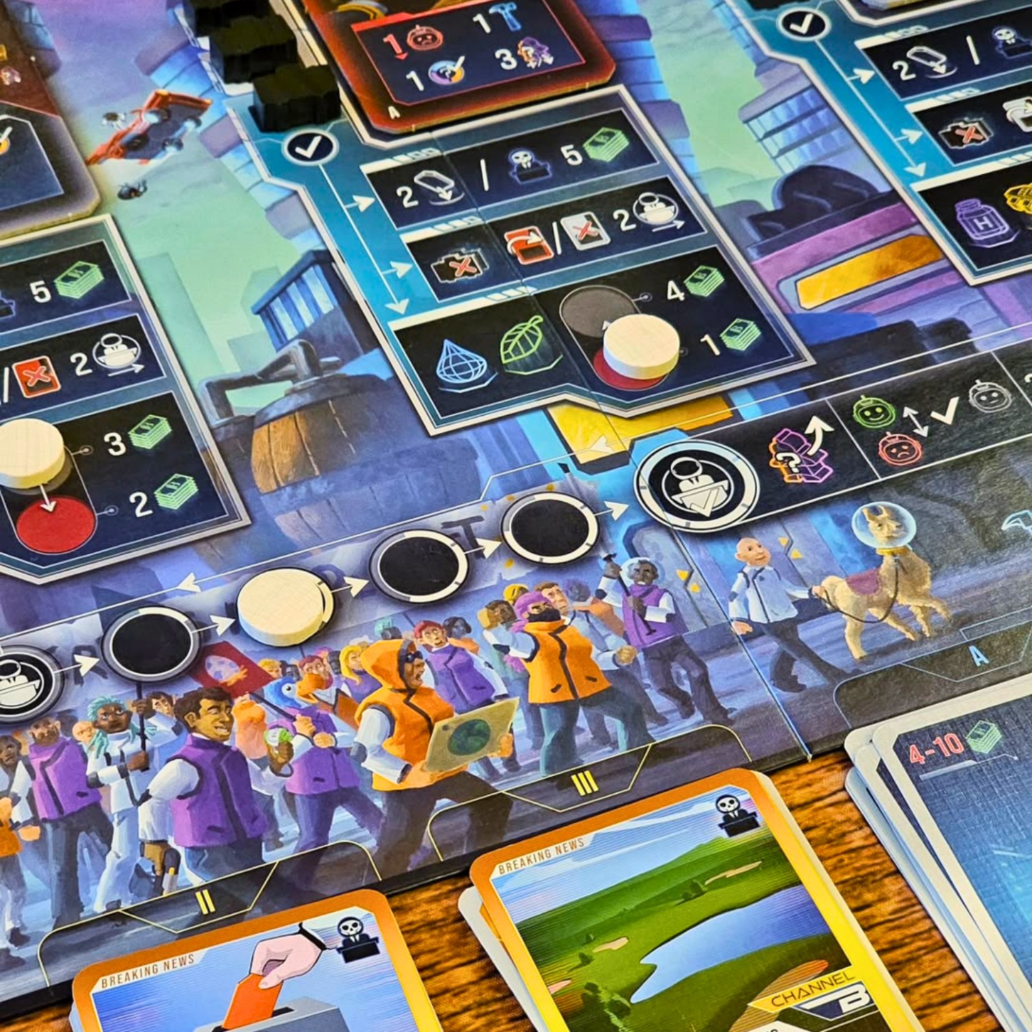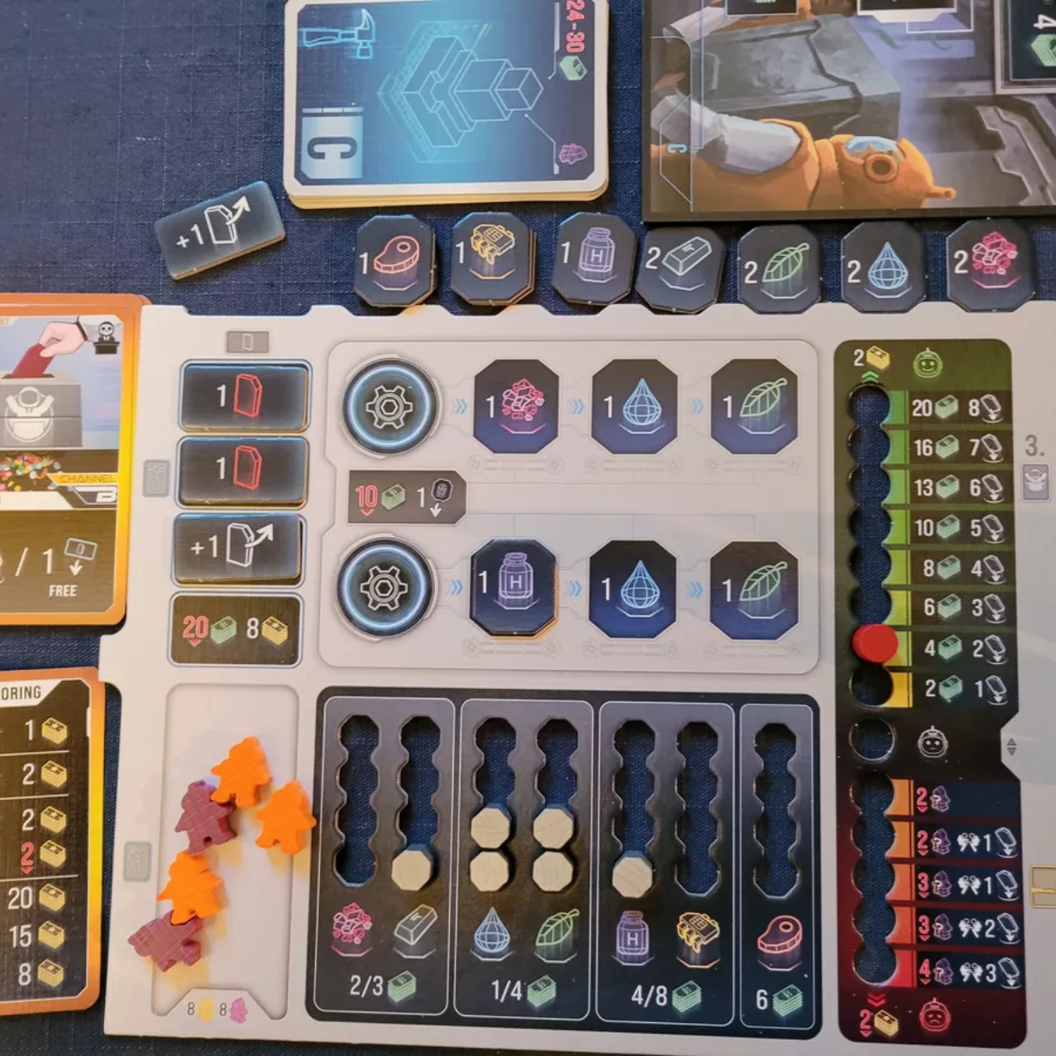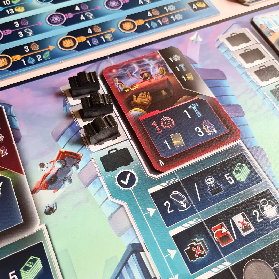 Điểm làm nên sự khác biệt của Planet B chính là hệ thống cơ chế phối hợp cực kỳ chặt chẽ nhưng lại cho phép người chơi chơi bẩn một cách hợp pháp. Về cơ bản, đây là một game Worker Placement kết hợp Tile Placement để xây dựng các tòa nhà trục lợi. Tuy nhiên, linh hồn của trò chơi nằm ở cơ chế Bầu cử và Dự luật. Bạn không chỉ sản xuất hàng hóa hay kiếm tiền, bạn còn phải thu thập các lá phiếu để trở thành Tổng thống. Khi nắm quyền, bạn có quyền ưu tiên thực hiện các dự luật có lợi cho túi tiền cá nhân và bóp nghẹt đối thủ. Việc cân bằng giữa việc phát triển cơ sở hạ tầng và việc đi cửa sau với các tập đoàn tham nhũng tạo nên một bài toán tối ưu hóa cực khó, khiến người chơi phải căng não trong từng lượt đi.