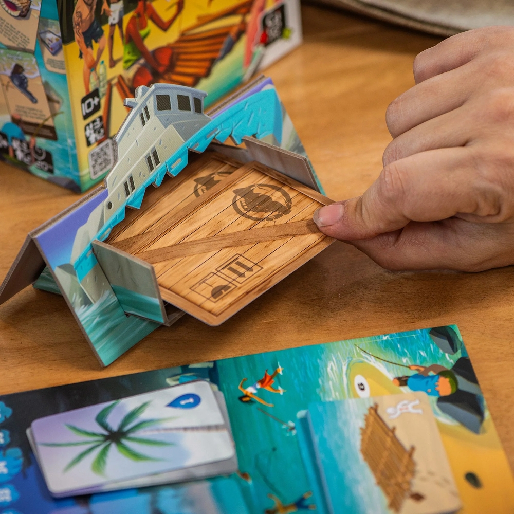 - Luật chơi dễ như ăn kẹo: Chỉ mất khoảng 15 phút là hiểu hết luật. Có 4 hành động chính thôi: câu cá, lấy nước, kiếm gỗ, hoặc lượm đồ trong xác tàu. Đơn giản để ai cũng nhập cuộc được, nhưng đủ sâu để mấy "thánh lươn" có đất dụng võ.