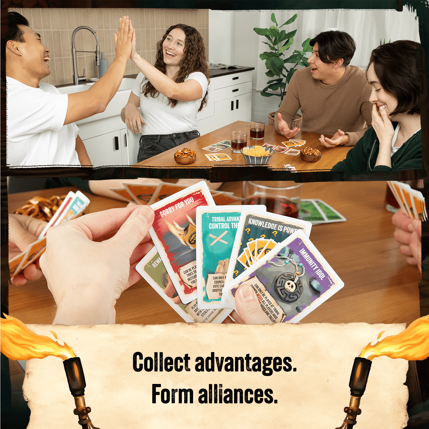 Tribal Council: Khi lá bài đặc biệt xuất hiện, tất cả sẽ bước vào phiên bỏ phiếu. Đây là lúc thương lượng, hình thành liên minh, hứa hẹn hay lật lọng. Người bị bỏ phiếu nhiều nhất sẽ mất một nhân vật hoặc bị loại khỏi trò chơi.