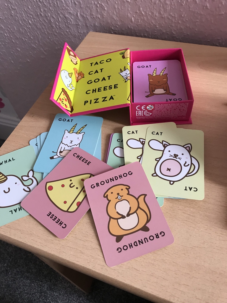 Người chơi sẽ thay phiên nhau lật bài và đồng thời đọc theo chuỗi từ: Taco – Cat – Goat – Cheese – Pizza. Khi từ bạn nói trùng với hình ảnh trên lá bài, tất cả phải nhanh tay đập tay vào chồng bài – ai chậm nhất sẽ phải “ôm” hết bài!