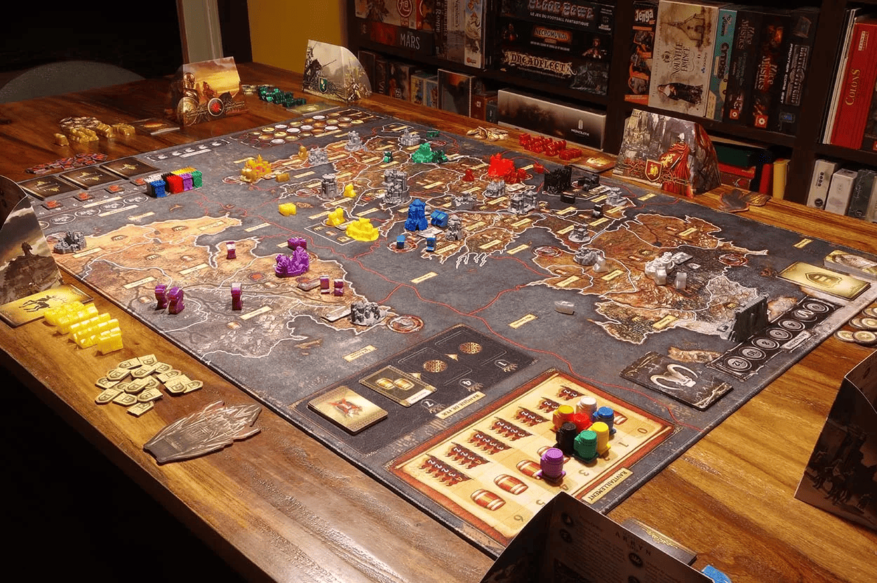 • Essos Sideboard: Một bảng phụ (side board) đại diện cho các Thành phố Tự do của Essos, nơi House Targaryen bắt đầu trò chơi. Bảng phụ này mở rộng không gian chơi với nhiều khu vực biển và đất liền mới, cho phép di chuyển giữa Essos và Westeros.