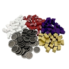 104 thẻ tài nguyên bằng gỗ: Gồm 26 thẻ cho mỗi loại tài nguyên: thịt, đá quý, vàng và sữa. Các thẻ này được in hình ảnh rõ nét, thay thế cho các thẻ bìa cứng trong hộp.