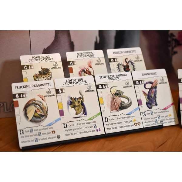 ◦ Trò chơi có 183 thẻ rồng được minh họa độc đáo. Các thẻ rồng không chỉ có các khả năng "Khi đặt" (When Played), "Khi khám phá" (When Explored), "Một lần mỗi vòng" (Once Per Round) và "Tính điểm cuối game" (End-game scoring), mà còn được phân loại theo Kích Thước (Large, Medium, Small, Hatchling) và Tính Cách (Aggressive, Shy, Helpful, Playful).